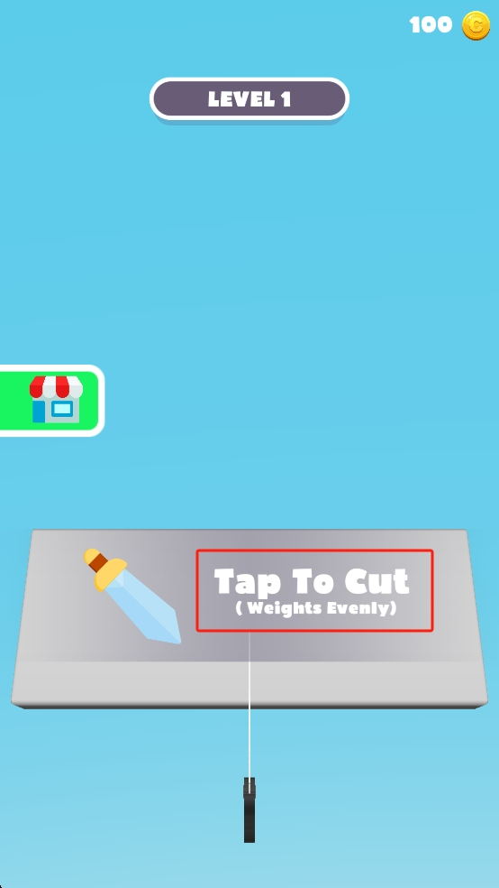 1. 轻点屏幕,触发刀具,切断悬挂物体的绳索,开启Level1挑战。仔细观察切割区域,保证操作精准无误后,启动游戏。