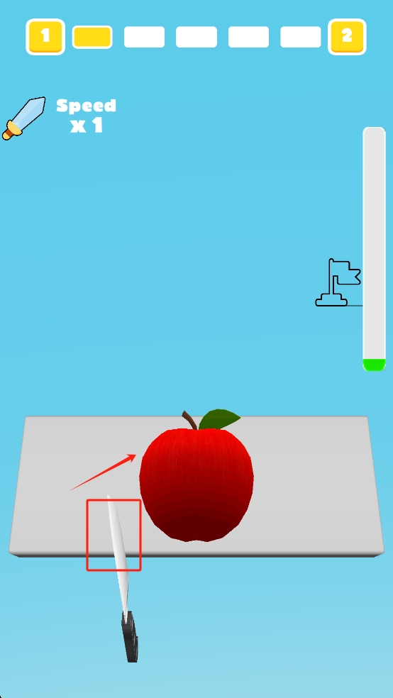 2. 对准苹果所在位置,轻点屏幕,让刀具迅速移动,凭借合适的速度与角度,精确切割苹果,完成关卡设定的切割目标。