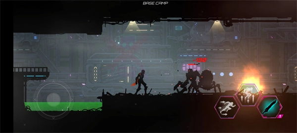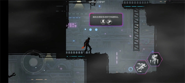 6、如图所示,当玩家遭遇此类障碍时,只需先点击跳跃,再点击冲刺,就能跳上平台。