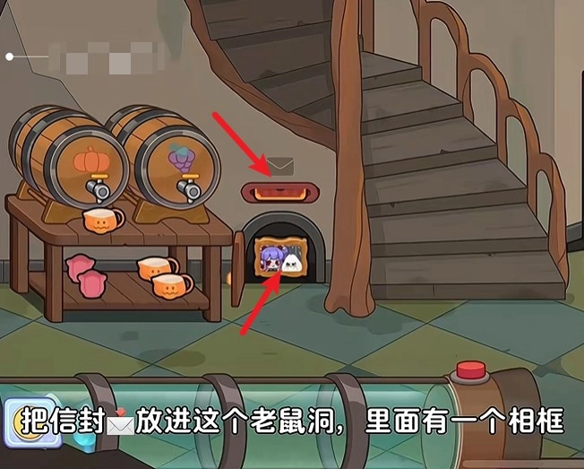 6、接着来到这里的老鼠洞当中,将信封放进去可以得到一个相框。