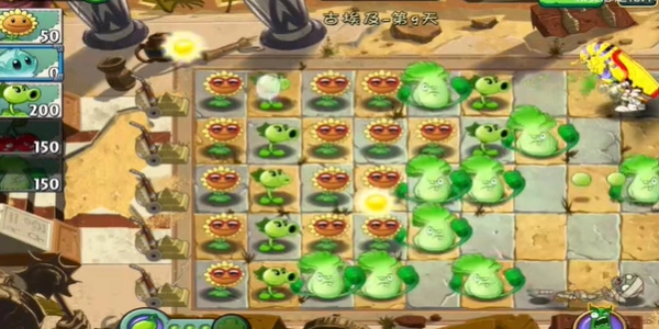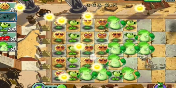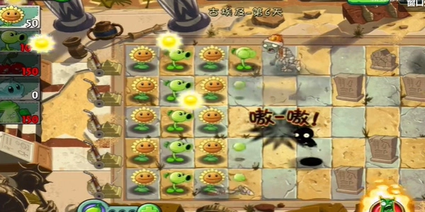 2、前期可以优先选择全图攻击的植物,这样玩家就不用照顾每一行的情况,放手关注阳光即可。
