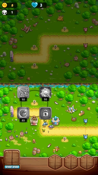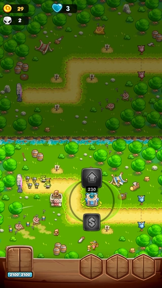 1、动态塔防布局:在随机生成的敌人路径上部署箭塔、魔法塔、炮塔等,结合地形(如狭窄通道、高地)优化防御效率。