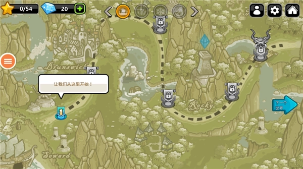 2、进入选择关卡页面,点击第一个开始游戏;