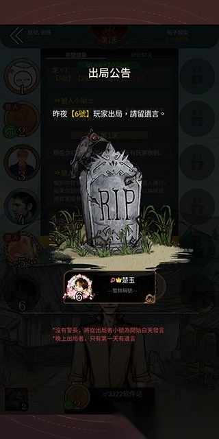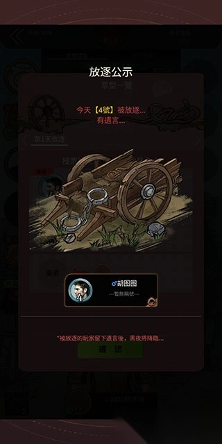 4、可疑人员淘汰后也会有发表遗言的机会。