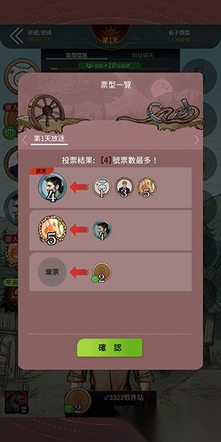 3、然后通过投票的方式来淘汰可疑人员,得票高者被淘汰出局。