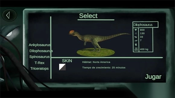 2. 点击play后可以选择不同的恐龙,有五种不同的恐龙可以选择。