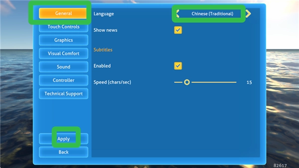 2、在【General】这一栏,将语言切换为Chinese (Traditional),接着点击【Apply】。