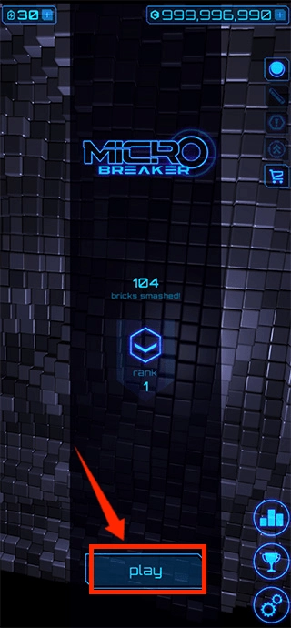 1、控制挡板移动,反弹小球击碎砖块,精准的角度控制可以获得更高分数,特殊角度会触发暴击效果。