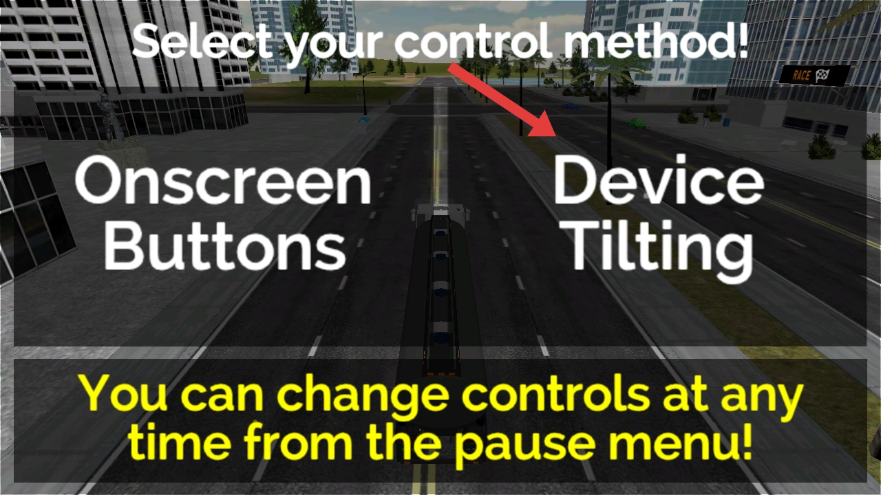 2、在控制方式选择页,选择【DeviceTilting】(设备倾斜)操控模式,通过重力感应驾驶卡车。