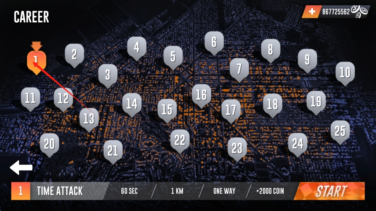 2、选择关卡,注意收集限时零件,可能用于合成稀有赛车,利用每日登录奖励获取免费升级与加速解锁。