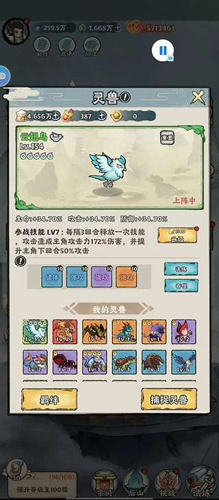 鸟类所具备的属性包含:强攻、连击、对灵兽的抵抗能力、暴击等等。