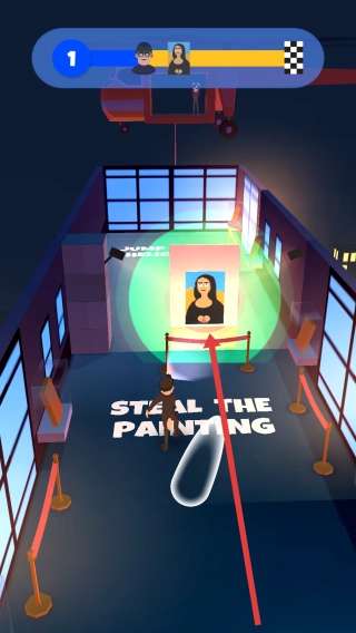 2、踏入关卡后,依照箭头指示行动,逐步靠近目标画作(比如《蒙娜丽莎》),同时要躲开监控,尝试执行“STEAL - THE - PAINTING”操作,以完成此次挑战。