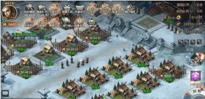 主城之中,各类建筑无法进行升级操作。玩家于主城内可拥有皇宫、资源市场、战功商店、武将商店、国家军营以及武将酒馆。