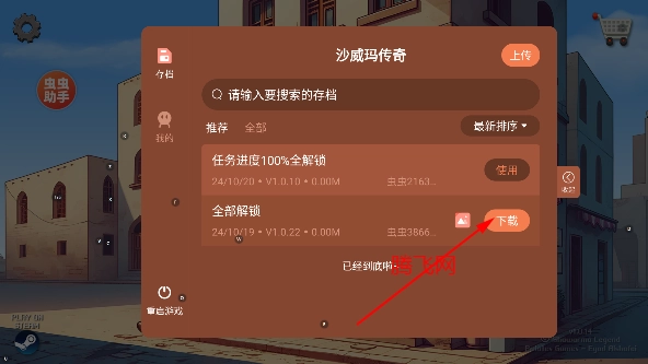 在虫虫助手悬浮菜单中,浏览可用的存档列表。