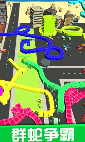 2、动态成长体系,玩家初始是一条迷你小蛇,凭借吞食路灯、车辆乃至摩天大楼来逐步壮大自身,体型越大,吞噬速度就越快,实现滚雪球般的成长。