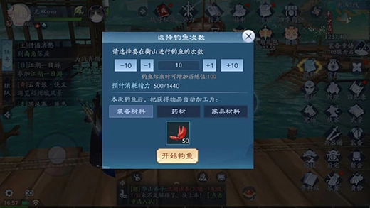 需留意,钓鱼是要耗费精力的,每钓一条鱼会消耗50点精力。此外,钓上来的鱼能够自动加工成装备材料、药材或者家具材料,在此提醒大家要先做好相关设置。