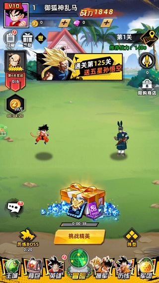 神龙战争0.1折版,这是一款以龙珠为题材的游戏。它对龙珠里孙悟空、贝吉塔、龟仙人、比克等角色,从外观到角色技能都做了完美复刻。在游戏中,玩家将以“领头人”的身份,借助游戏系统展开招募,组建起强大的阵容,打造出梦幻战队。接着经历空中乱斗、武道场PK等环节,最终达成儿时召唤神龙的梦想。为增添游戏的趣味性,游戏还设置了五大阵营、六类羁绊,让玩家能体验到更多乐趣。