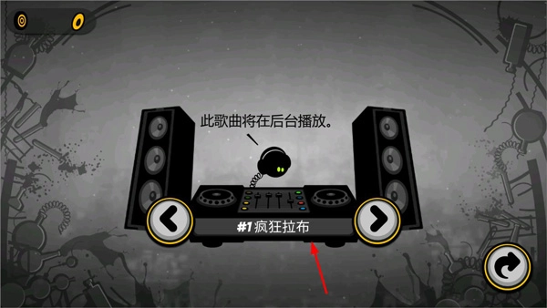 2、点击“开始”后,会打开关卡页面。在此页面上,玩家能够切换墨点角色,接着点击页面左侧的音乐按钮。