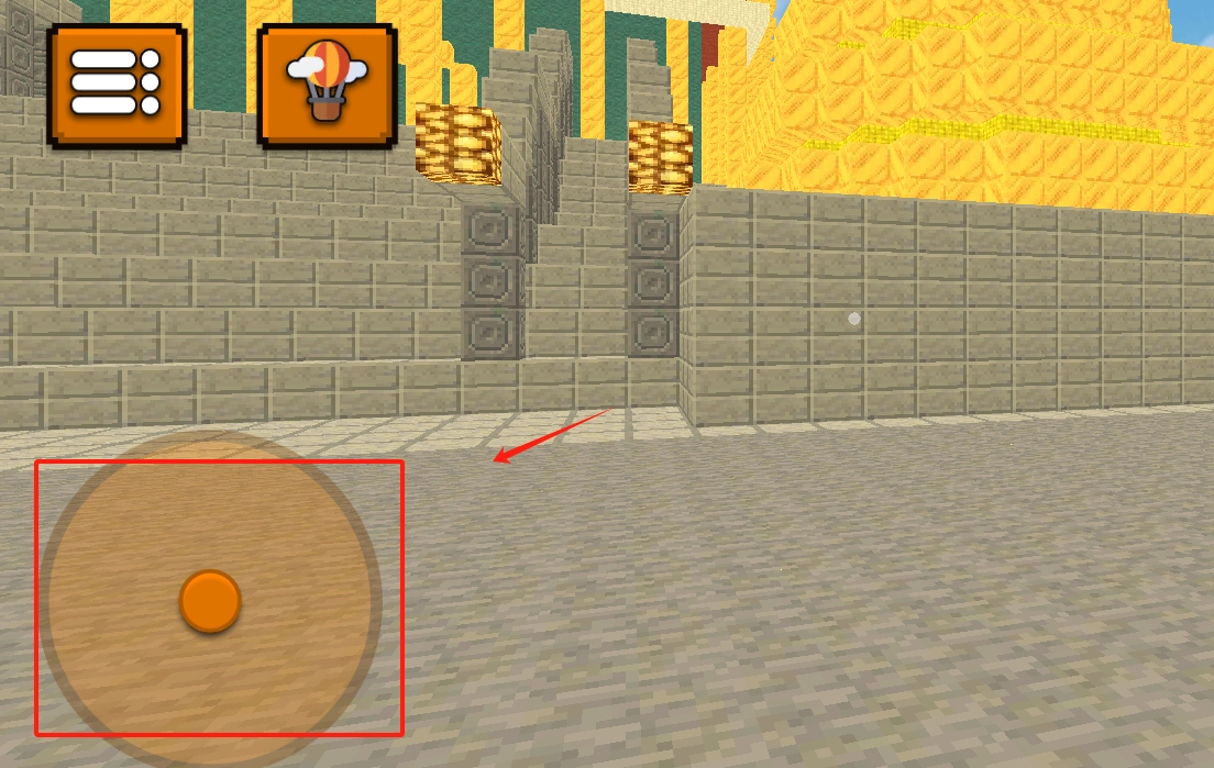 3、用手指在橙色圆圈操控区滑动,控制角色在像素场景中移动探索方向。