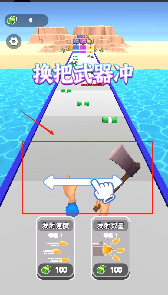 1、滑动屏幕控制斧头攻击,还能调发射速度和数量,轻松打金币。