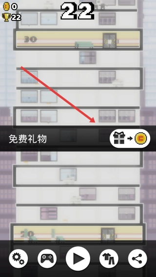 3、奖励解锁:跑酷中触发“免费礼物”,解锁奖励(金币),推进游戏,体验像素跑酷与楼层探索乐趣。