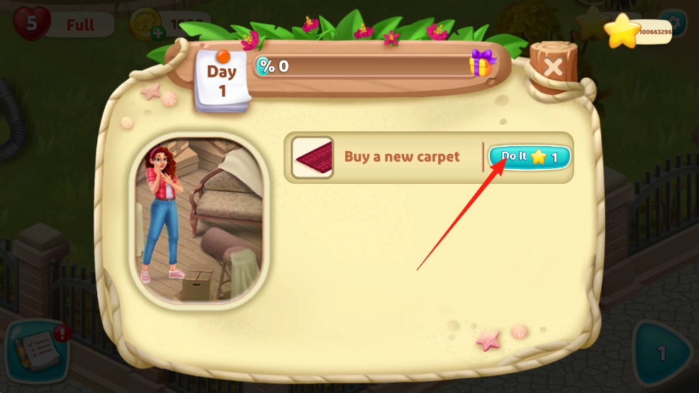 3、完成地毯布置,接收清洁任务,清理房间杂物,达成目标,获取奖励。