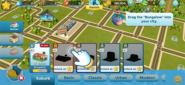 1、在本站下载安装好城镇建设者最新版进入游戏,玩家需要从建造房屋开始;