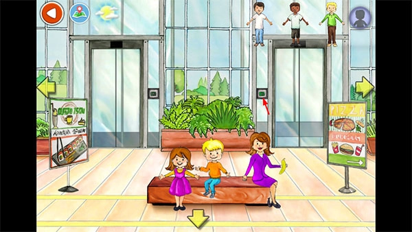 1. 第一步,打开娃娃屋plus全新版且全部解锁的游戏。进入游戏场景后,来到电梯口,就如同在现实生活里一样,点击按钮便能打开电梯门。