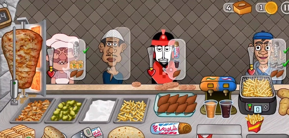 不断积累财富来解锁更多的食材,并研发全新的沙威玛配方,制作全新口味来满足更多客人。