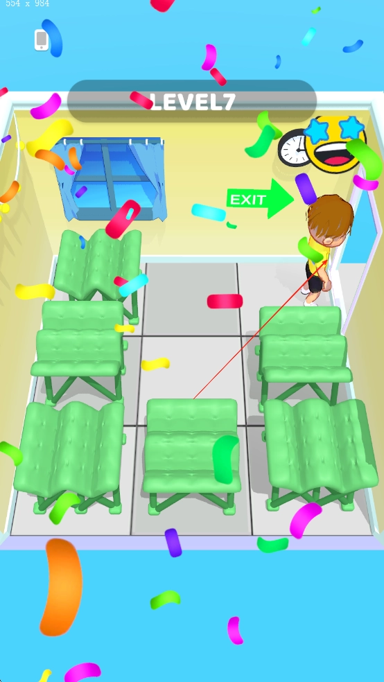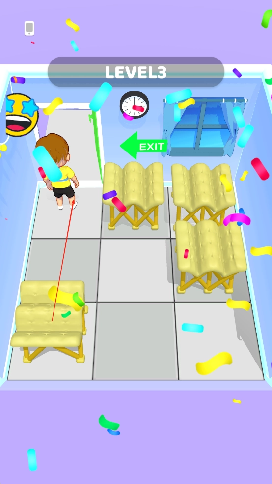 3、在场景中收集钥匙道具解锁房门,部分关卡设置限时挑战,需在时间耗尽前完成折叠床的路径规划与障碍突破。