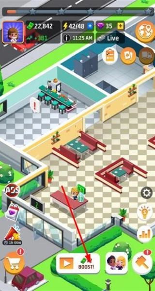 1、进入游戏后在初始餐厅放置基础餐桌与厨房设备,点击招募新手厨师制作基础菜品,开启营业接待首批顾客。