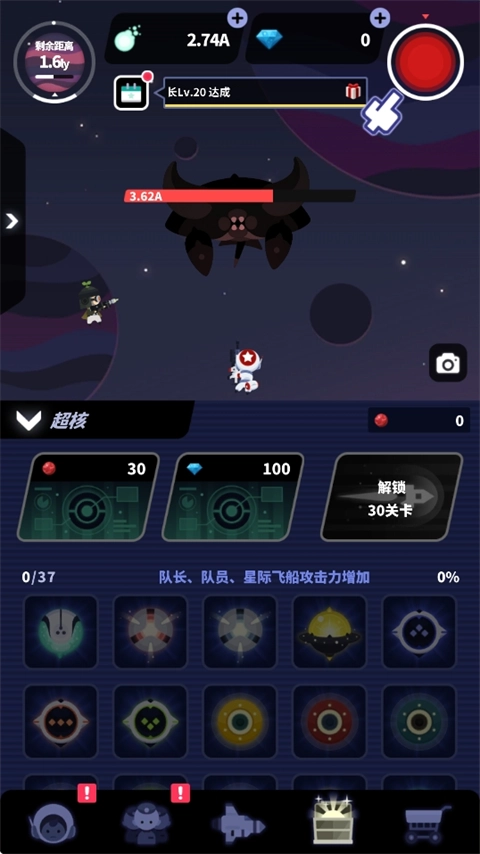 5、超核类似于增幅技能,解锁的超核数量越多,队长、队员以及星际飞船的攻击力就会越高。
