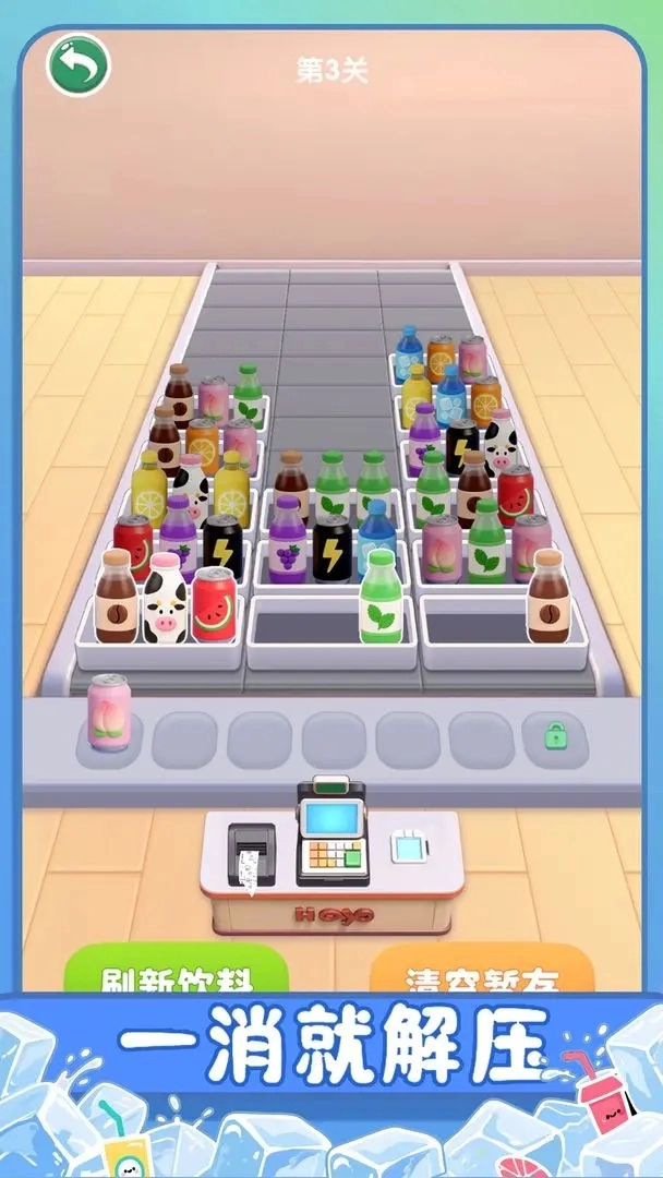 冰爽碰碰消作为一款主打消除玩法的休闲益智游戏,凭借简洁直观的操作与充满策略性的关卡设计,为玩家营造出轻松愉悦的游戏体验。玩家通过点击屏幕底部的瓶子来操作,当三个同类型瓶子连成一线就能实现消除,目标是把关卡内所有瓶子清除以顺利通关。 游戏在基础玩法中融入循序渐进的设计思路,随着关卡的逐步推进,瓶身图案的种类愈发丰富,挑战性也相应提高。这种由易到难的节奏设定,既考虑到新手玩家的上手过程,也为资深玩家提供了不断探索的动力。
