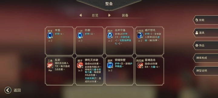 在挑战最终boss之前,借助短暂力量体系来迅速通关。其中的关键在于将小同花狂怒提升至max,以及让三条狮子斗志达到max。饰品选择抽牌类,通过快速叠加临时力量,并搭配高hit数技能或者单支普攻,实现速杀。