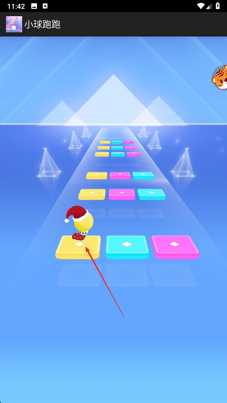 1. 游戏开启,操控小球于彩色方块铺就的跑道上前行,轻点屏幕,使小球跳跃至前方颜色相同的方块之上。