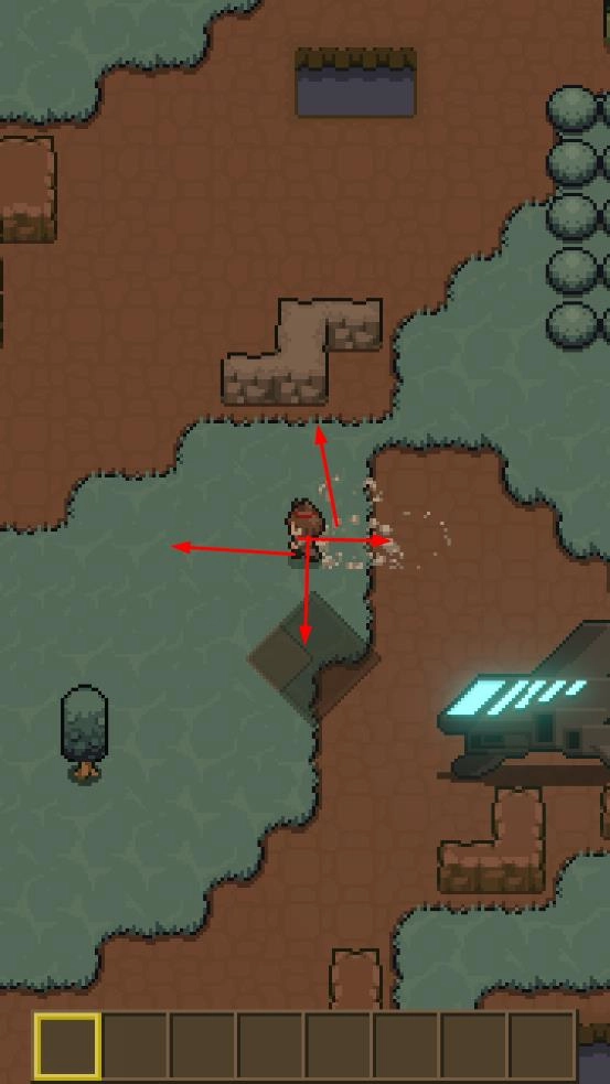 1. 通过四向操作来控制角色,对草地、水域等地图区域展开探索。