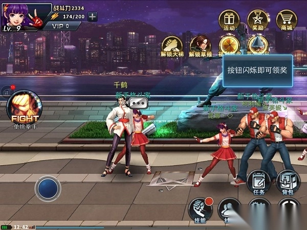 进入游戏后,选好初始格斗家,接着顺着主线推进就可以。前期系统的管控力度较大,玩家的每一步行动都会被严格限制,我们只要依照要求点击操作,完成各项任务,如此一来,便能实现升级,还会解锁出更多丰富的玩法内容。