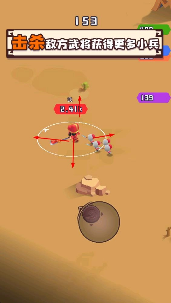 1. 掌控士兵行走对战:开启挑战后,对士兵进行操控,使其能在场地内自由走动。在行走过程中,要留意其他士兵实力的不同之处,主动靠近并击败比自己弱小的对手,从而获得成长,与此同时,要及时躲开实力更强大的敌人。
