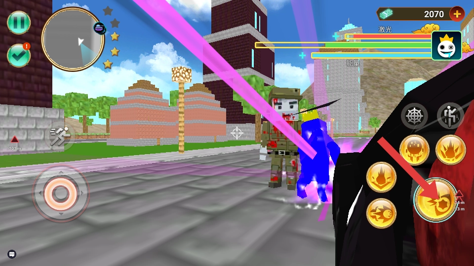 1. 于游玩页面内,当操控角色在像素城市场景进行移动操作时,需留意观察周边敌人的分布状况,预先做好战斗准备。