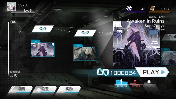 1、开启范式起源,进入游戏后画面如图所示,玩家能够自主挑选曲目,并选择难度展开挑战。
