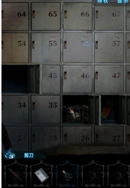 5、在房间的44号柜子中获取道具【剪刀】,此外,36号柜子里有【贴着符咒的女包】(目前无法取出),37号柜子里有一张贴着的符咒(这或许是彩蛋之类的,并未实际使用到)。