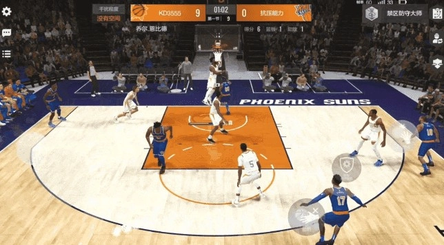 8、篮板卡位操作:在进行防守时,将左摇杆用力推至底部,与此同时按下盖帽/篮板键,以此来抢占篮板位置。
