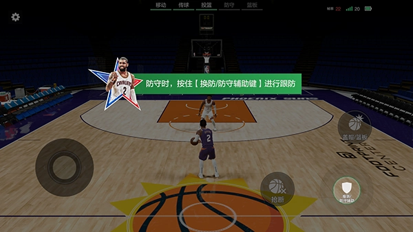 6、在防守阶段,你能够通过点击“换防”按钮,快速切换控制角色,紧密贴近对手展开干扰。
