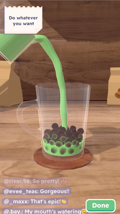 5、充分搅拌均匀后,点击【完成】按钮,这样一杯饮品就制作完成啦,接下来就等待顾客前来评分吧。