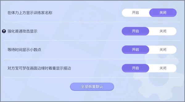 当对方宝可梦处于画面边缘时,着重显示其描边:推荐开启此功能,这样能更清晰地看清处于边缘位置的敌人。