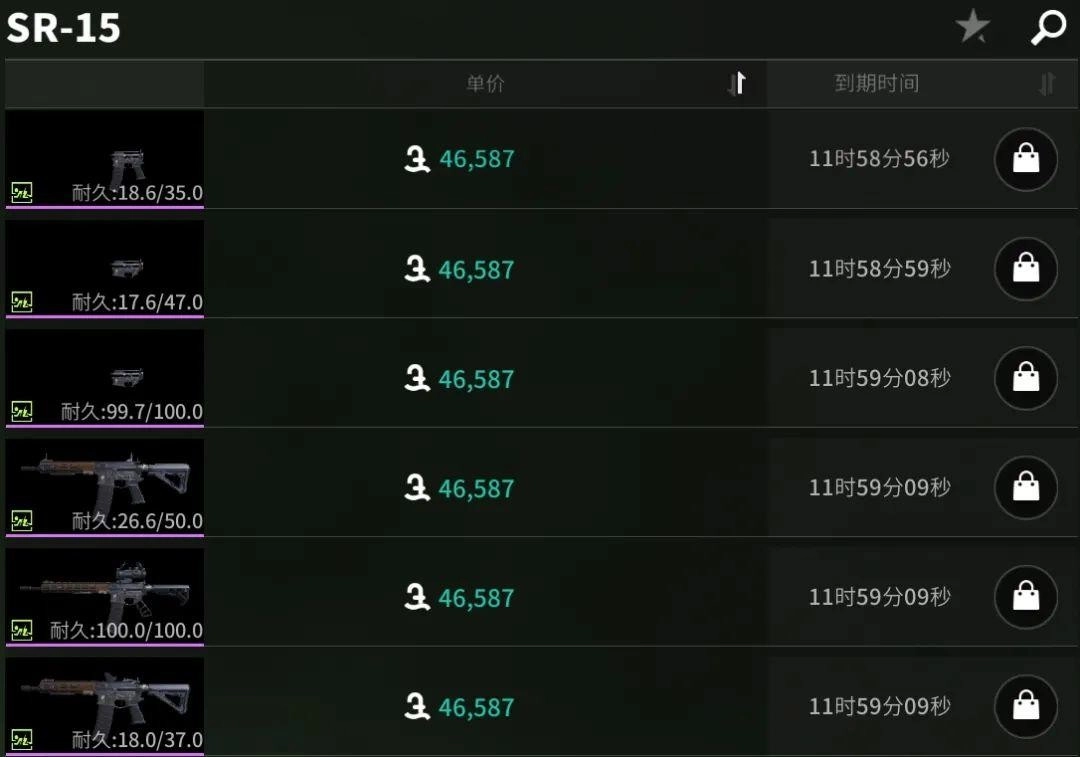 鉴于枪械产量较高,寄卖市场的枪械价格通常较为低廉。所以小萤建议在寄卖市场挑选价格实惠的枪械来进行拆解,不过在购买的时候,一定要留意枪械的基本部件是否齐全哦。