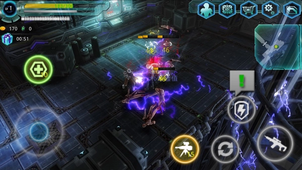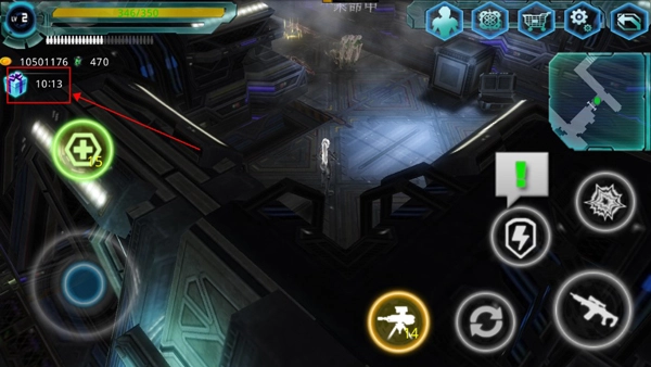 这款游戏操作难度不大。进入游戏后,玩家会瞧见界面左下角有个圆环按钮,此按钮用于控制角色移动。玩家若想让角色朝某个方向移动,按住该按钮往相应方向移动就行。在移动过程中,玩家需依据地面上绿色箭头的指示行动。要是碰到异形生物,玩家点击界面右下角带有枪图标的按钮,就能发射子弹攻击目标。另外,游戏里还设有一个道具,即黄色图标标识的机枪标志,玩家点击这个图标,便可释放机枪塔进行自动攻击。