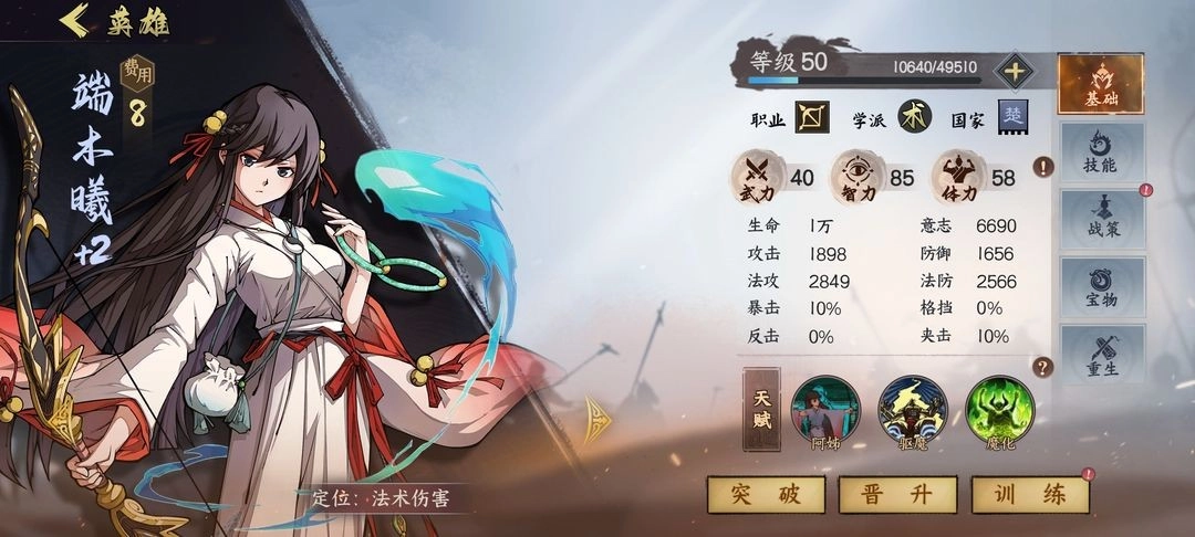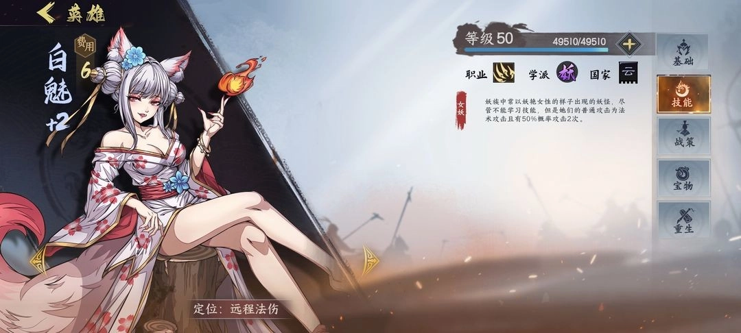 白魅身为妖族,虽无法学习技能,然而其普通攻击存在50%的几率触发两次攻击,并且它最为突出的特性是行动无需消耗任何军令。