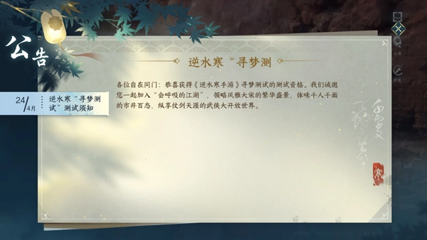 本次测试禁止在模拟器上创建角色,各位同门需在手机端完成角色创建。