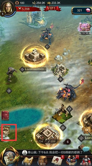 3、随后点击龙球上方形似旗子的标识,即可进入大地图。
